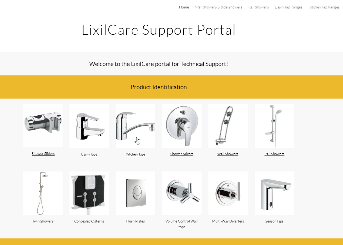 Select the category that is related to your enquiry. For this case, we want to locate a Kitchen Tap cartridge. So you go ahead and click on the Kitchen Taps category.