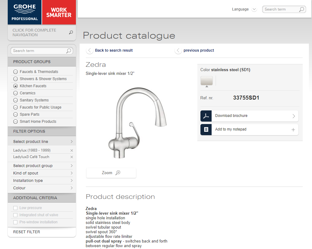 Once you follow the link, you will arrive at the Grohe global website, which will show the product that you have selected.